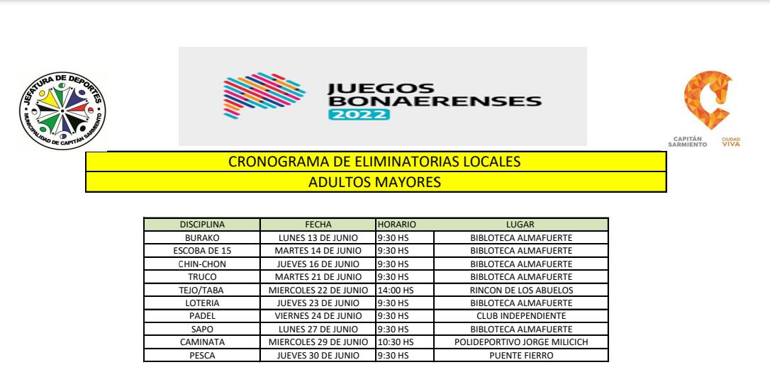 Cronograma Juegos Bonaerenses 2022